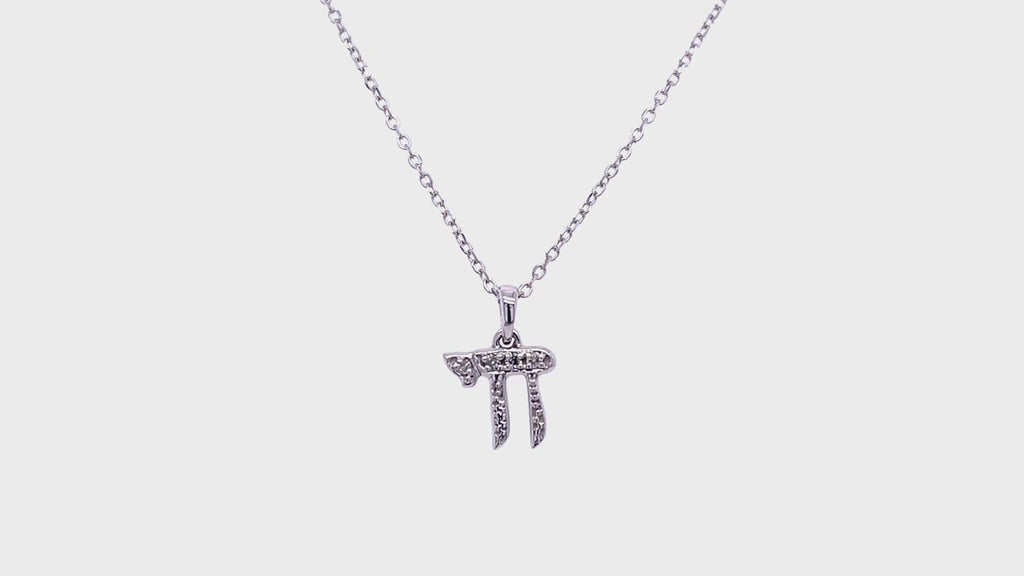 Diamond Hai (Chai) Pendant Necklace 0.03ct G/SI Quality 18k White Gold - All Diamond