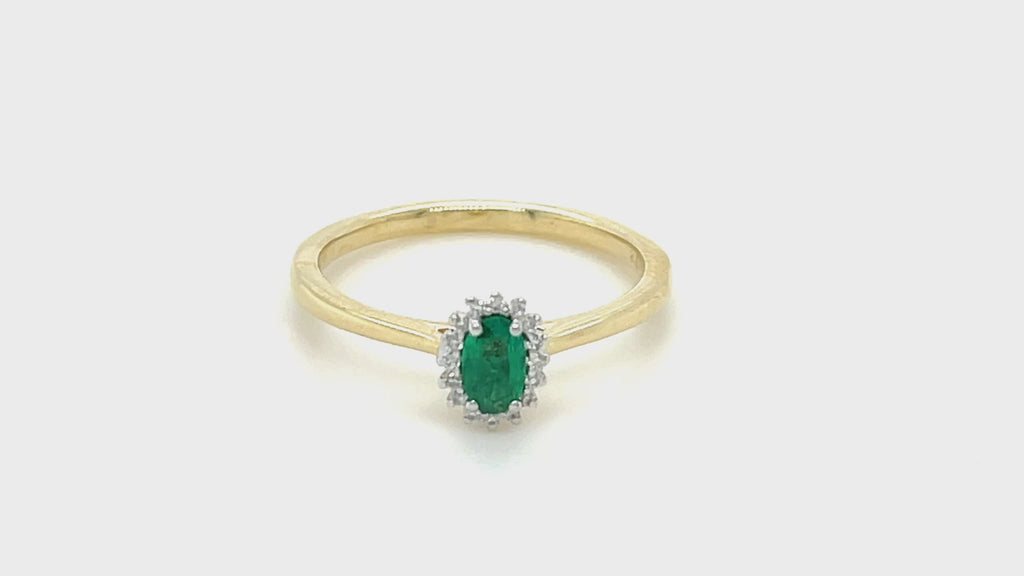 Emerald 0.20ct and Diamond 0.05ct Ring In 9k Yellow Gold