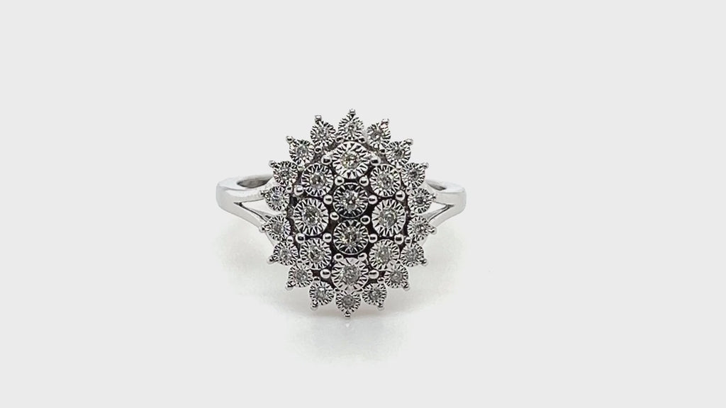 Diamond 0.25ct G/SI Quality 9k White Gold Cluster Ring - All Diamond