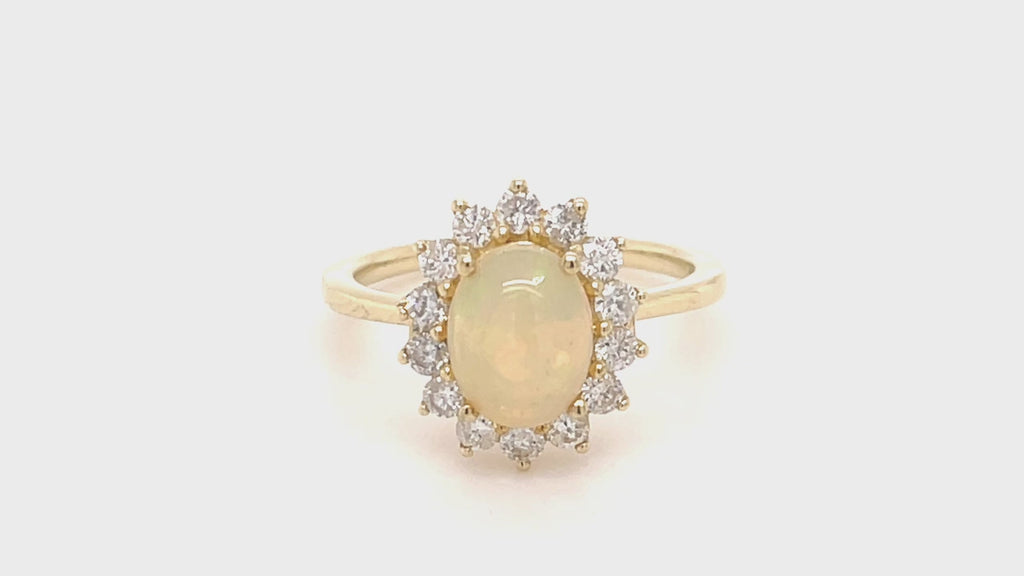 Opal 1.12ct and Diamond 0.52ct Cluster Ring in 9K Yellow Gold - All Diamond