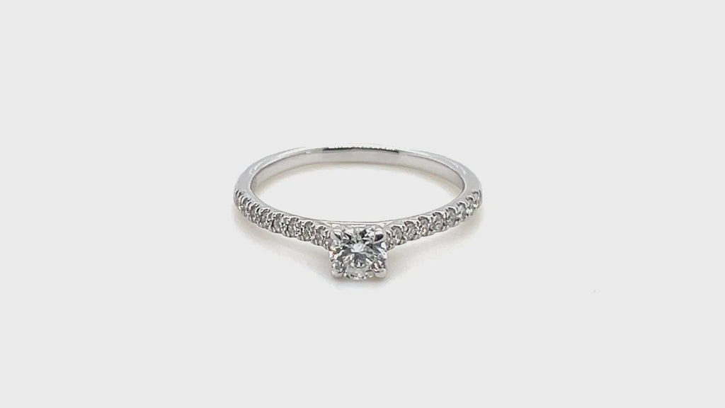 Certified Diamond Round Side Stone Engagement Ring 0.75ct G/SI 18k White Gold