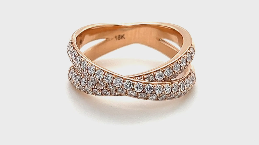 Pave Diamond Half Eternity Crossover Ring 1.00ct G/SI 18k Rose Gold