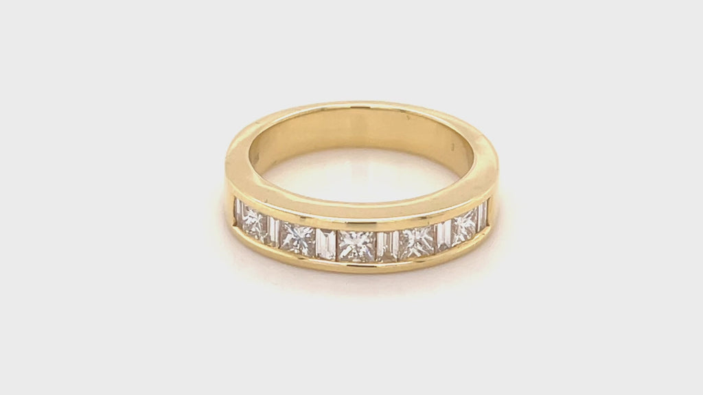 Princess & Baguette Diamond Half Eternity Ring 1.10ct 18k Yellow Gold