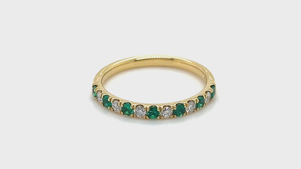 Channel Emerald & Diamond Half Eternity Ring 0.50ct 18k Yellow Gold