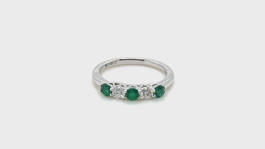 0.30ct Emerald 0.20ct Diamond Five Stone Ring 18k White Gold