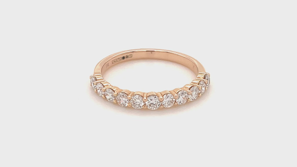 11 Stone Half Eternity Ring 0.75ct G/SI Diamonds in 18k Rose Gold