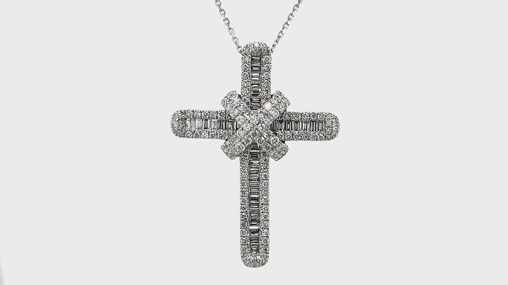 Diamond Cross Baguette & Round Diamonds 1.15ct In 18k White Gold