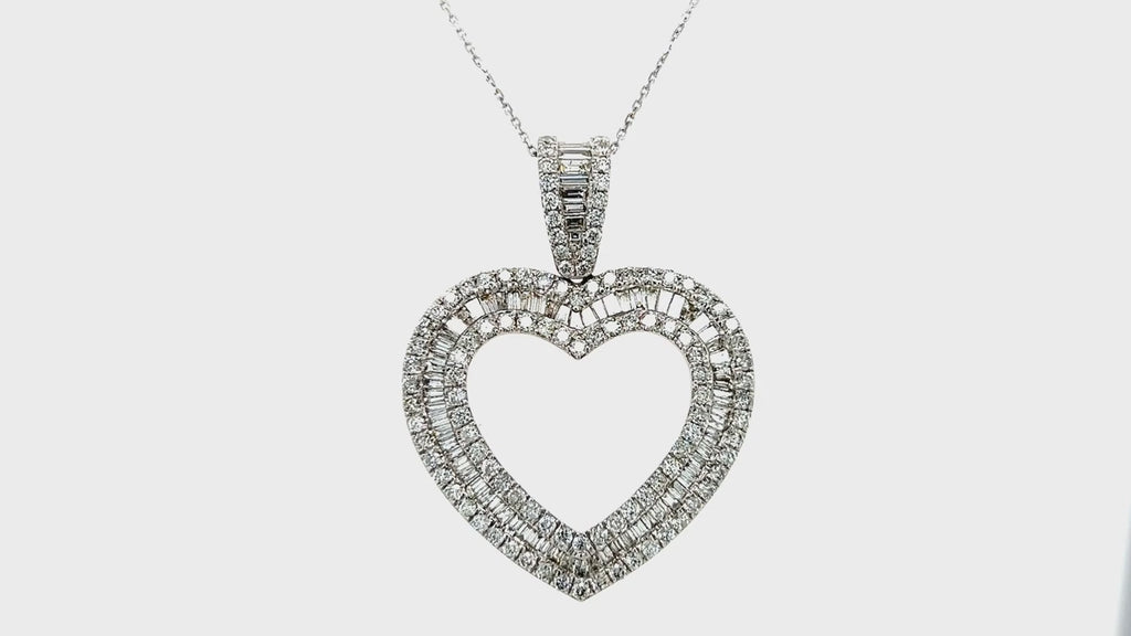 Baguette & Round Diamond Necklace 2.85ct G/SI Quality in 9k White Gold - All Diamond