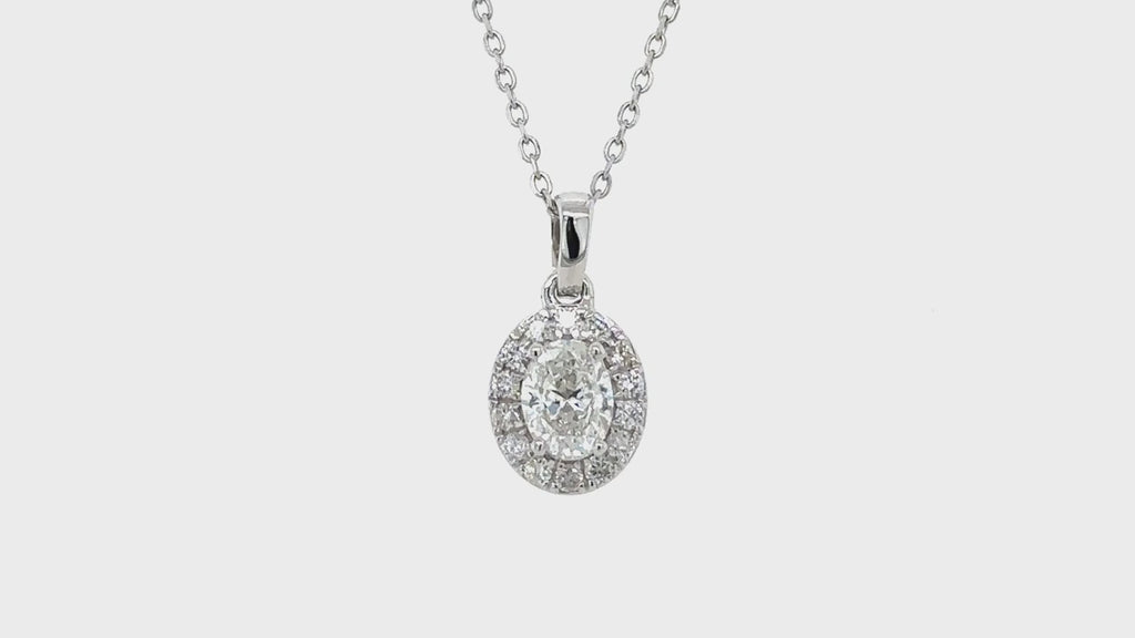 Diamond Halo Oval Pendant 0.55ct G/SI Quality in 18k White Gold