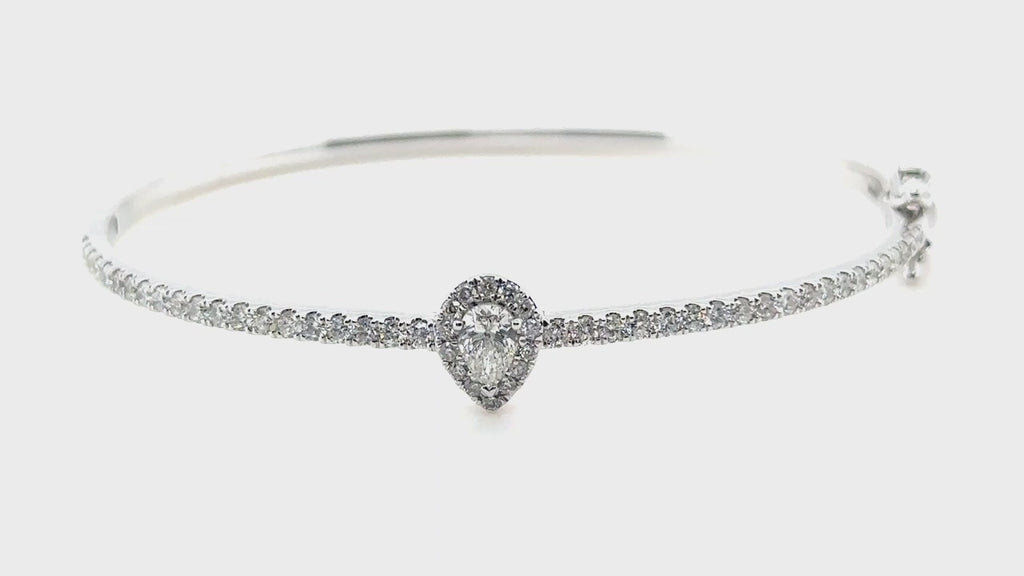 Diamond Halo Pear Bangle 1.55ct G/SI Quality Diamonds in 18k White Gold - All Diamond