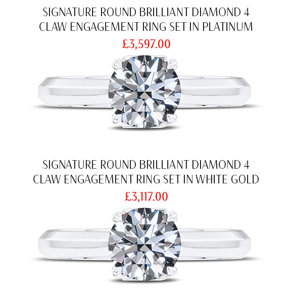 Although it looks almost exactly the same as white gold, it tends to cost more due to its greater weight as compared to white gold.