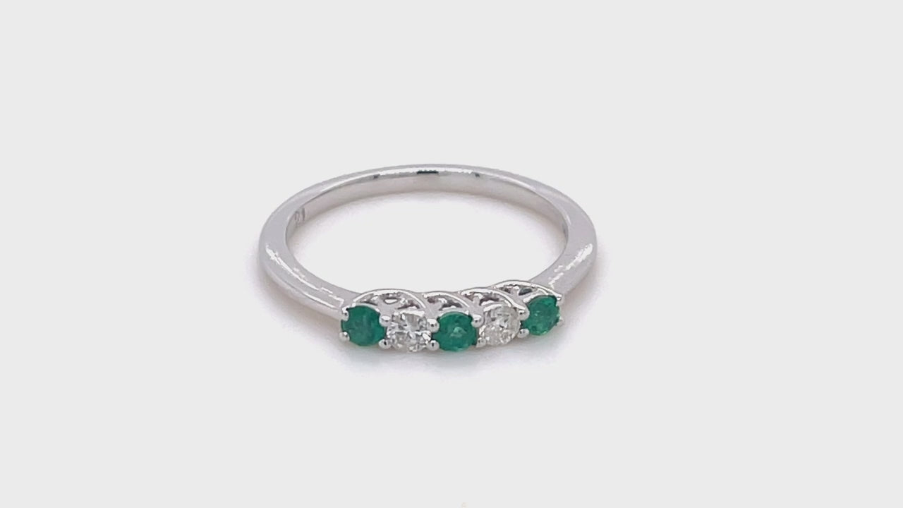 0.25ct Emerald 0.12ct Diamond Five Stone Ring 18k White Gold
