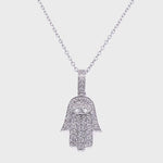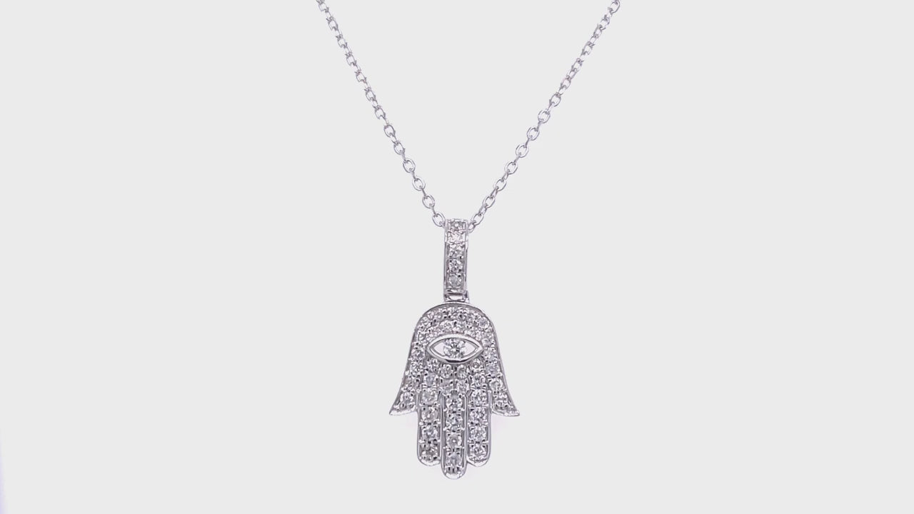 0.33ct Diamond and 9K White Gold 'Evil Eye' Hamsa Pendant Necklace - All Diamond