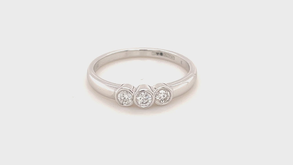 18k White Gold 0.25ct G/SI Diamond Three Stone Bezel Set Ring