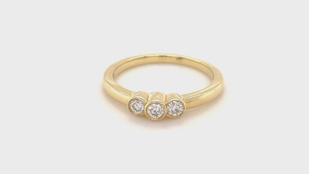 18k Yellow Gold 0.25ct G/SI Diamond Three Stone Bezel Set Ring