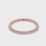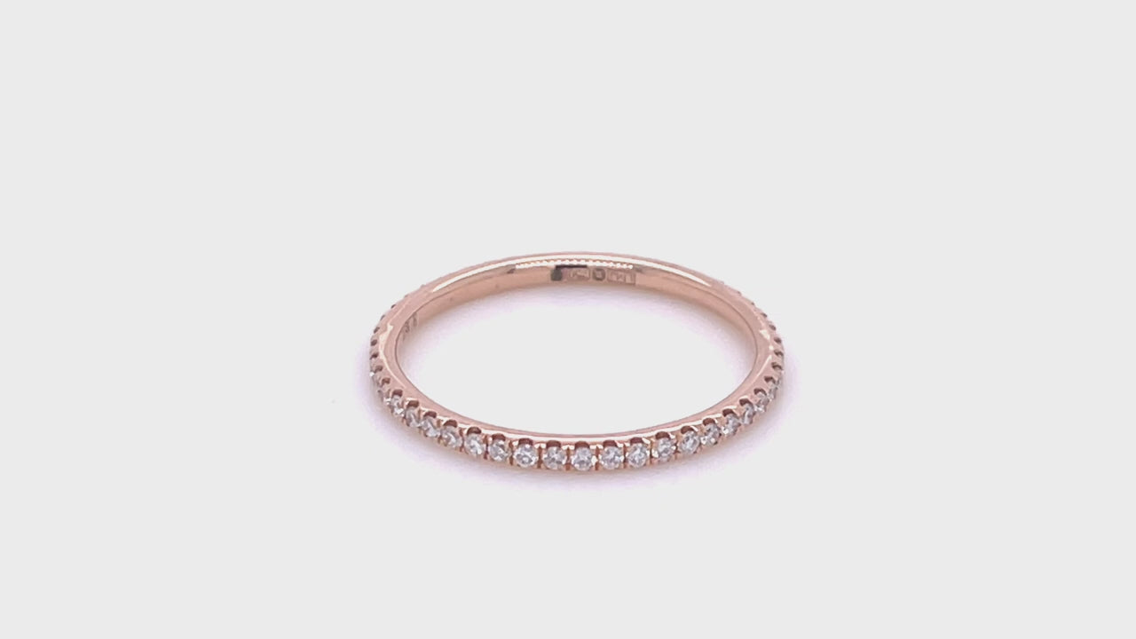 This full eternity ring has been gorgeously crafted out of warm 18k rose gold and is claw set showcasing 0.30 carats of brilliant-cut and ethically sourced G/SI quality diamonds, giving the ring a flawless finish. This elegant rose gold eternity ring features fifty sparkling diamonds firmly placed around the 18k rose gold band in a claw setting for a sparkling effect.
