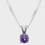 Amethyst Solitaire Necklace Pendant 0.45ct in 9k White Gold 5.0mm - All Diamond