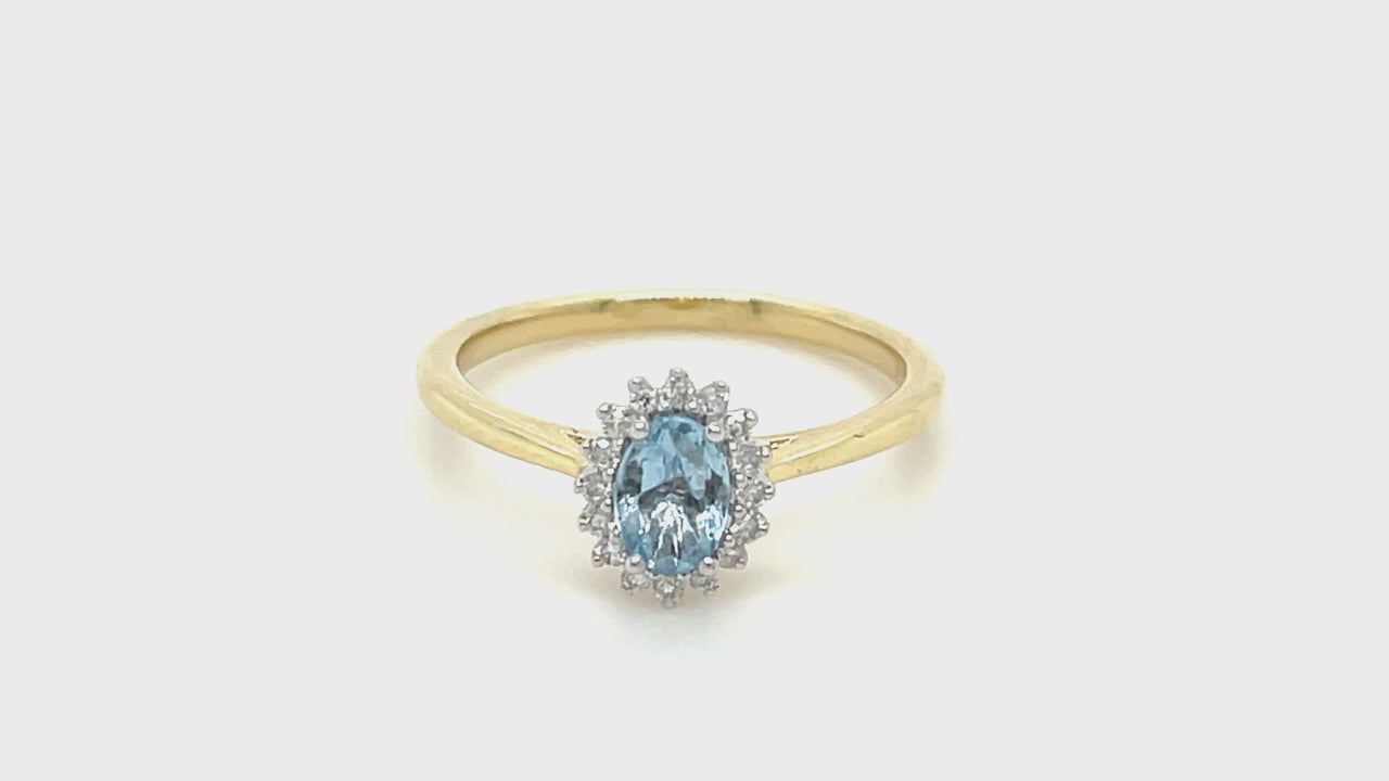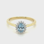 Aquamarine 0.40ct and Diamond 0.10ct Ring In 9k Yellow Gold - All Diamond