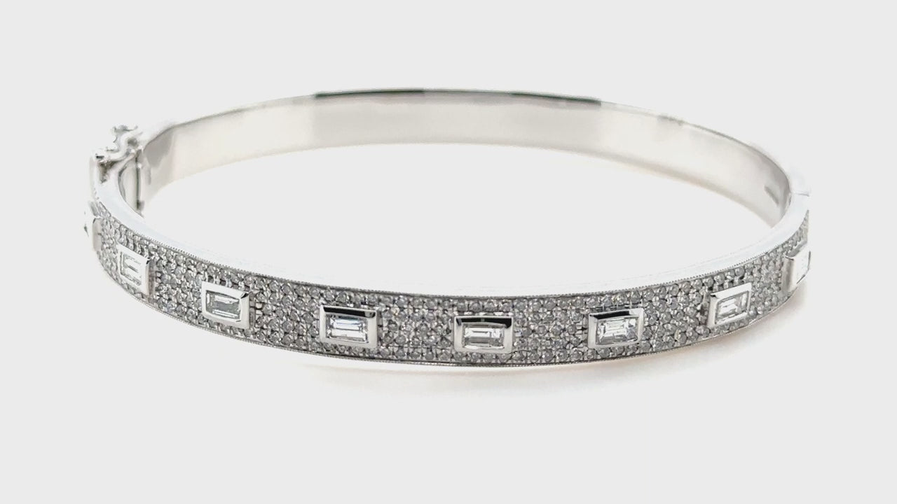 Baguette & Round Diamond Bangle 1.55ct G/SI Diamond In 9k White Gold - All Diamond