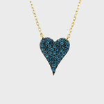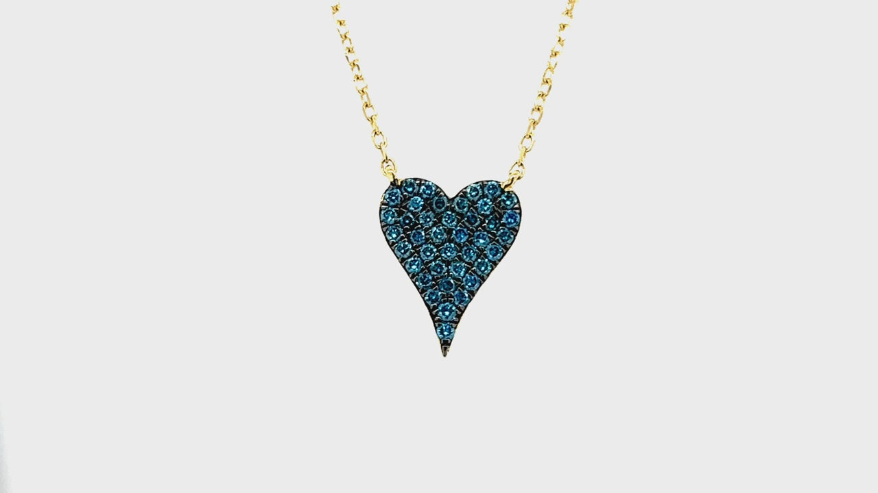 Blue Diamond Pave Heart Pendant Necklace 0.50ct in 18k Yellow Gold
