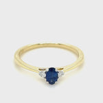 Blue Sapphire 0.20ct Diamond 0.05ct Three Stone Ring 9k Yellow Gold