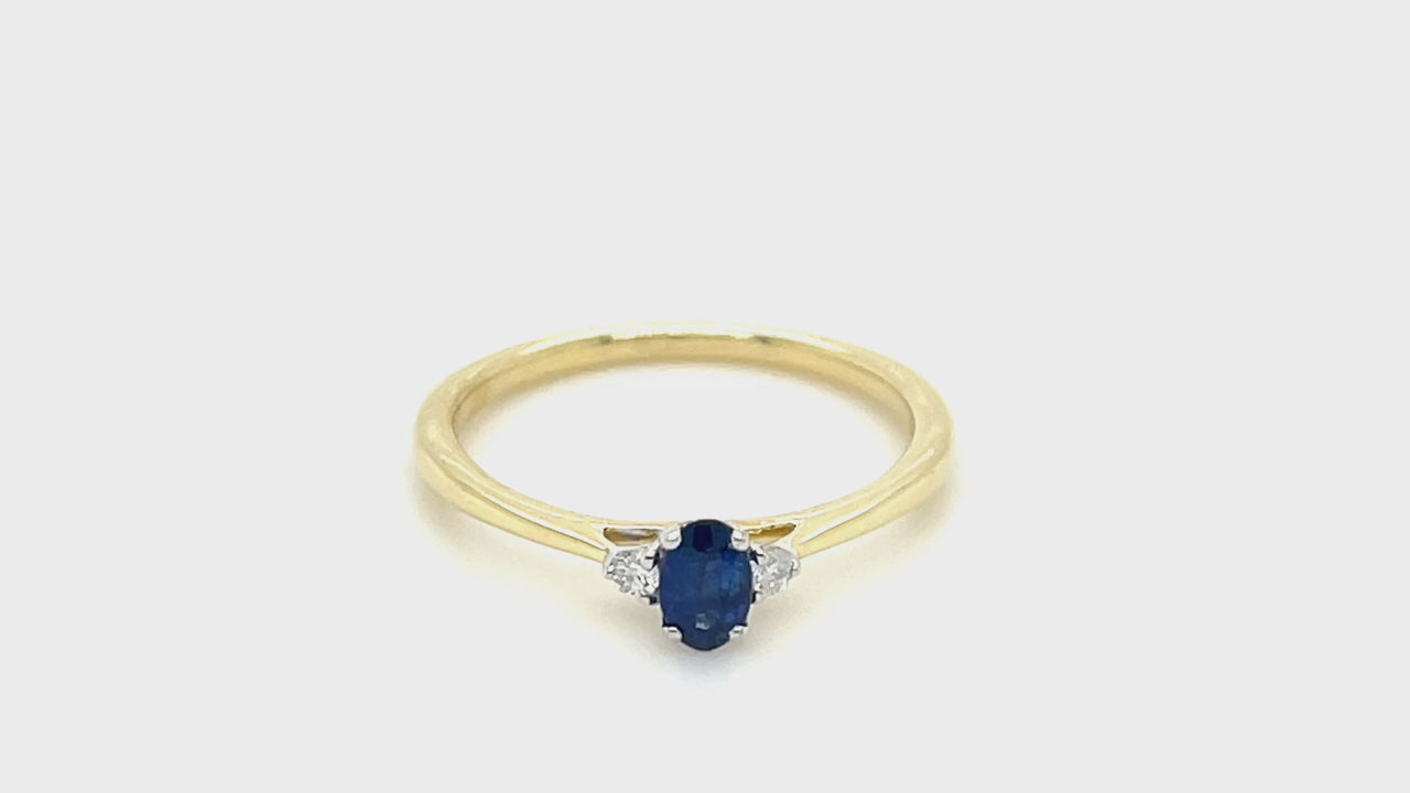 Are you looking for a ring that's just as beautiful on its own as it is when paired with other jewels? Then this sapphire and diamond ring is the perfect choice for you. Crafted from an oval shape blue sapphire weighing 0.20 carat and two G/SI quality diamonds weighing a total of 0.05 carats, this ring is sure to make any woman look great whether she's wearing it alone or paired with others. On top of that, its 9k yellow gold band gives it a modern yet classic look that can go with almost any outfit!
