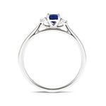 Blue Sapphire 0.60ct Diamond 0.06ct Three Stone Ring 9k White Gold