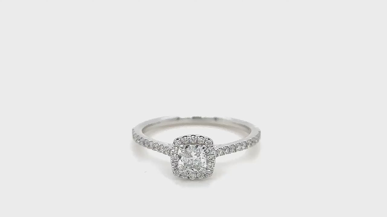 Certified Diamond Halo Cushion Engagement Ring 0.85ct 18k White Gold