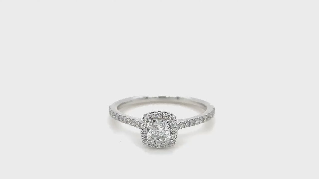 Certified Diamond Halo Cushion Engagement Ring 0.85ct Platinum - All Diamond