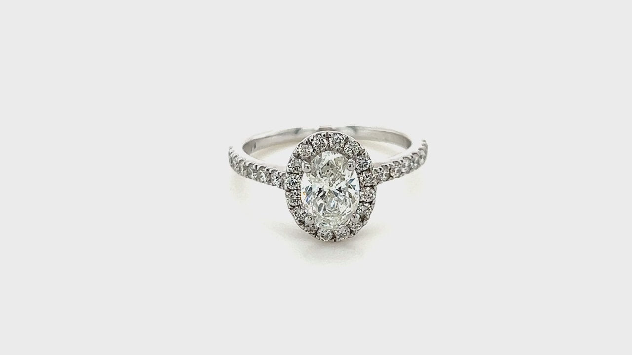 Certified Diamond Halo Oval Engagement Ring 1.50ct E/VS 18k White Gold