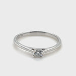 You are assured of quality and value with this lovely diamond solitaire engagement ring. Designed in the UK to delight your fiancée as you place the ring upon her finger, this ring features a 0.25 carat diamond graded as G/SI quality. The solitaire diamond is set into a UK hallmarked platinum band using a four prong claw setting. The diamond is displayed perfectly in the claw setting. We provide the diamond grading certificate, an insurance valuation report and a lifetime workmanship guarantee with this lovely engagement ring.
