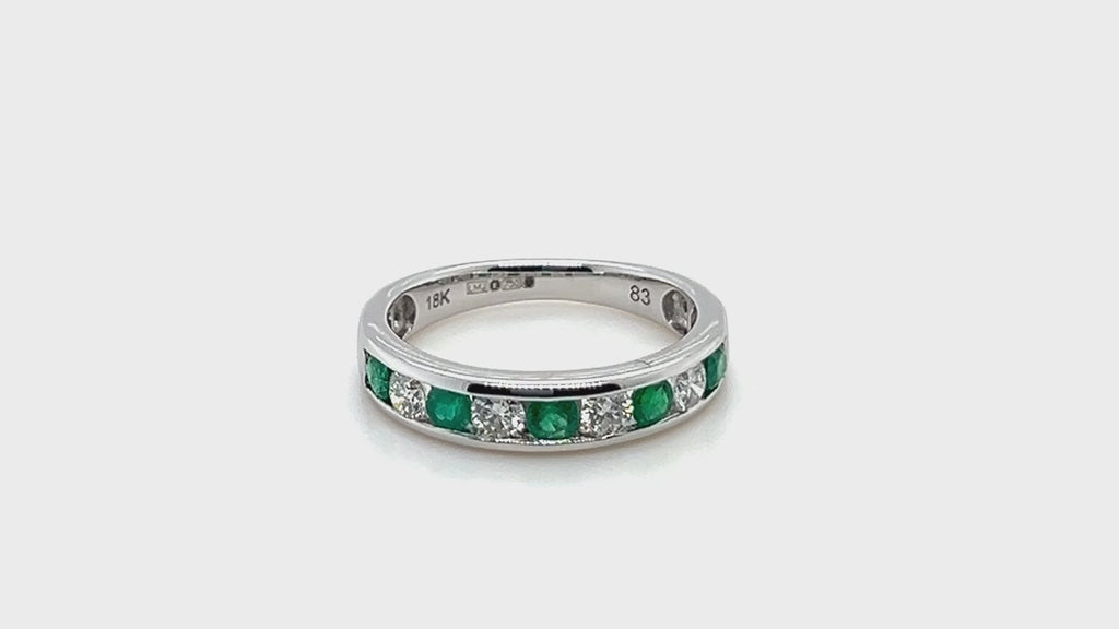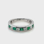 Channel Emerald & Diamond Half Eternity Ring 0.50ct 18k White Gold