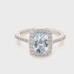 Cushion Halo Aquamarine 1.21ct & Diamond 0.32ct Ring in 18K White Gold - All Diamond