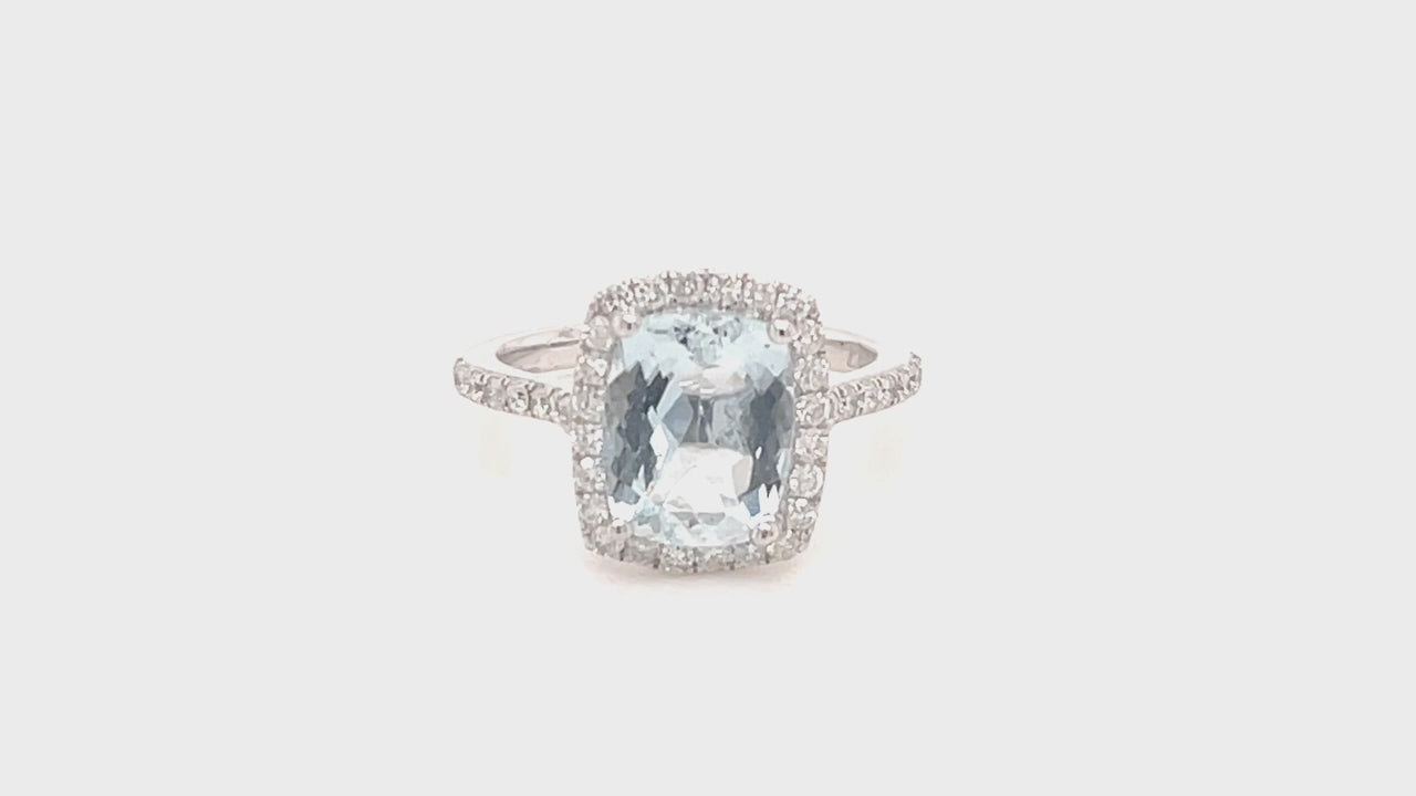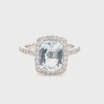Cushion Halo Aquamarine 2.33ct & Diamond 0.53ct Ring in Platinum - All Diamond