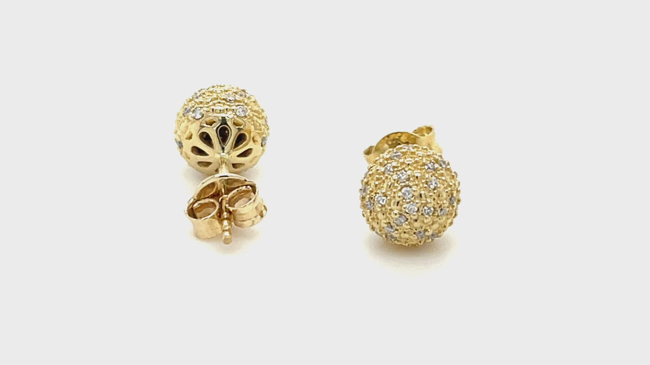 Diamond 0.23ct G/SI Pave Ball Stud Earrings in 9k Yellow Gold 8mm