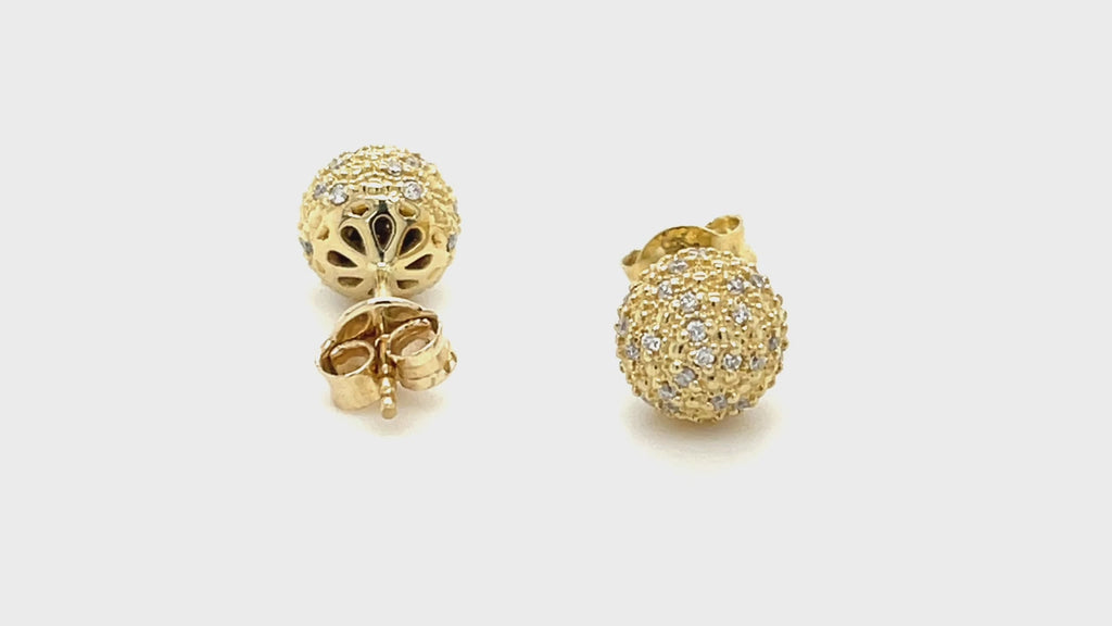 Diamond 0.23ct G/SI Pave Ball Stud Earrings in 9k Yellow Gold 8mm - All Diamond