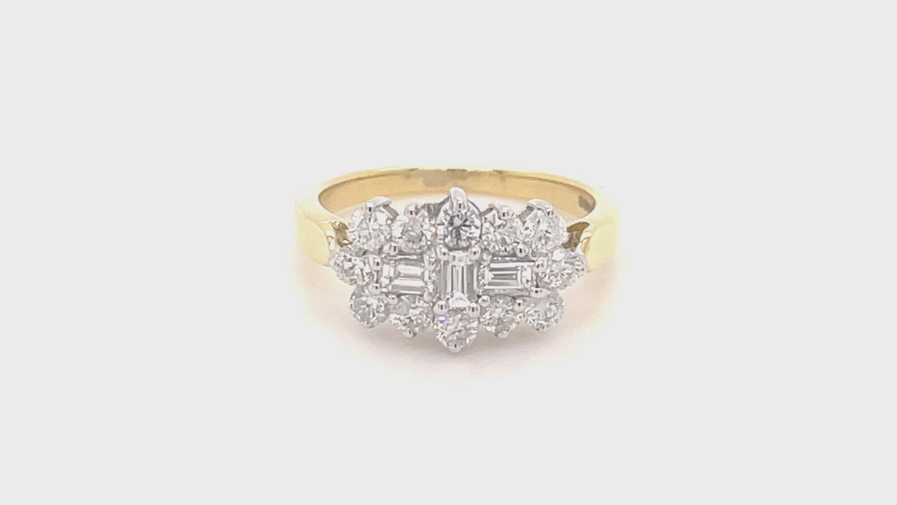 Diamond Cluster Boat Ring 1.00ct G/SI Quality in 18k Yellow Gold