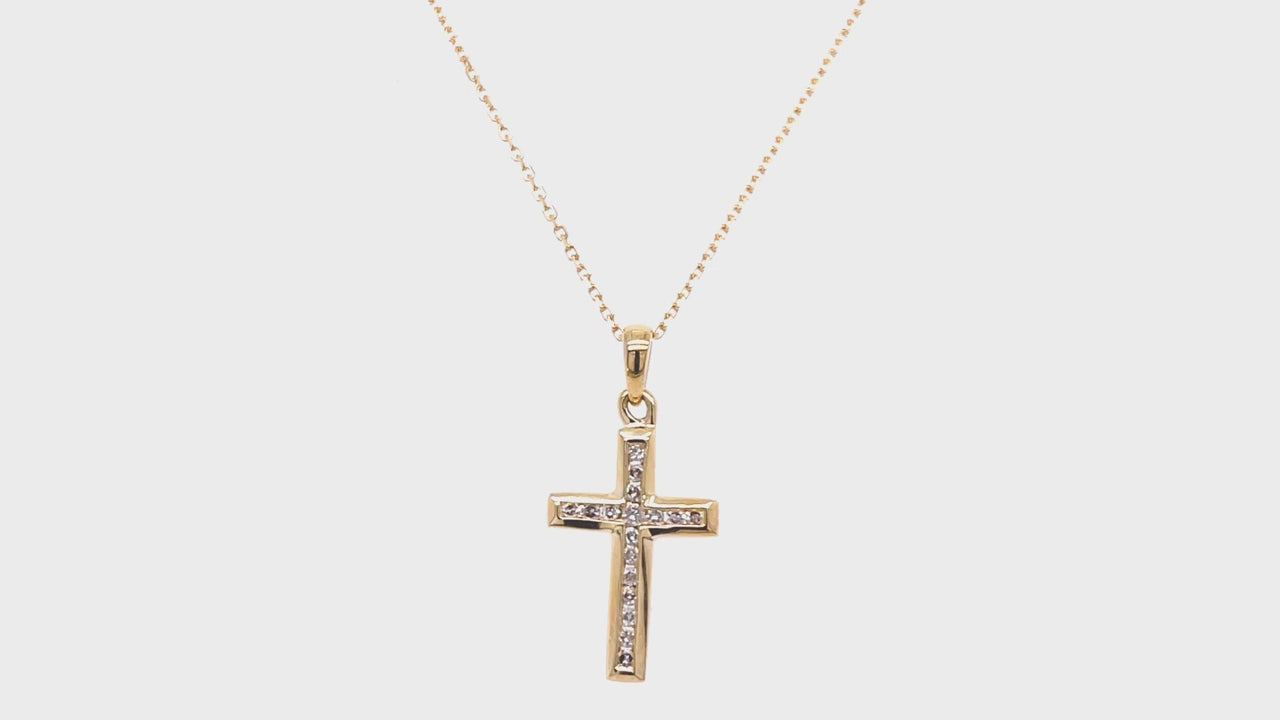 Looking for a simple, yet elegant diamond cross pendant, look no further with our timeless UK handcrafted 9k yellow gold cross pendant with 0.11ct and G/SI quality diamonds. This stunning piece of jewellery is a perfect gift to a loved one.