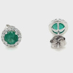 Diamond Halo Emerald Earrings 1.30ct Set in 9k White Gold