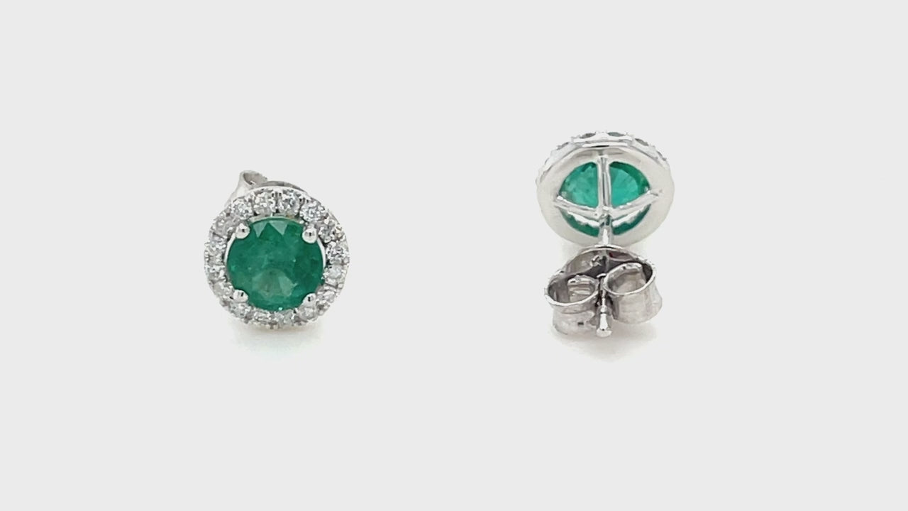 What better way to add sparkle and shine to your outfit than by adorning yourself with these diamond and emerald studded earrings? Handcrafted in 9k White Gold, the earrings are adorned with a total of 1.08 carats of round emeralds and 0.22 carat total weight of diamonds in a halo around the brilliant green emeralds. The diamonds are of G/SI quality, adding elegance and magnificence to the piece. Pair it up with your favourite formal attire or go casual for weekend partying!