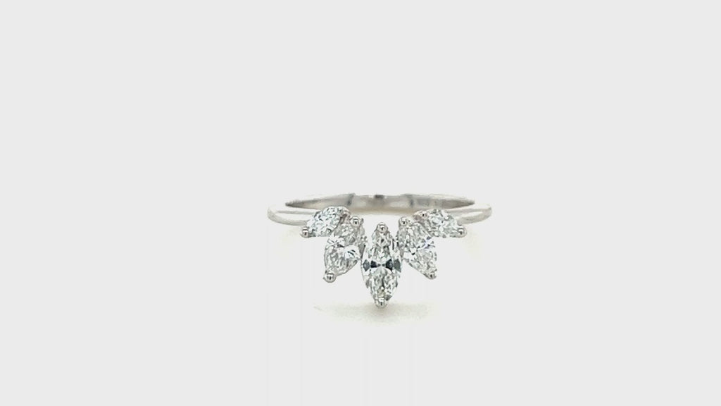 This Diamond Marquise Crown Ring perfectly blends timeless elegance and modern sophistication. With 0.60ct of G/SI quality diamonds set in 18k white gold, this ring will take her breath away. The unique crown design adds a touch of royalty and luxury. The marquise shape of the diamonds creates an illusion of a larger diamond and makes your ring stand out. Make your proposal one she'll never forget with this stunning ring.