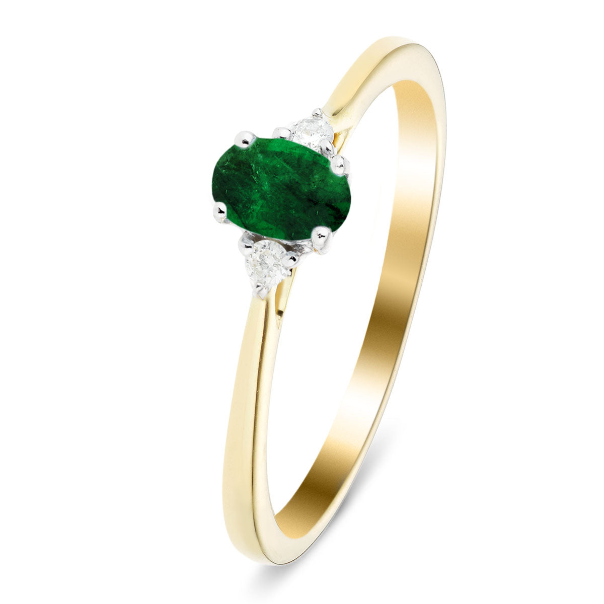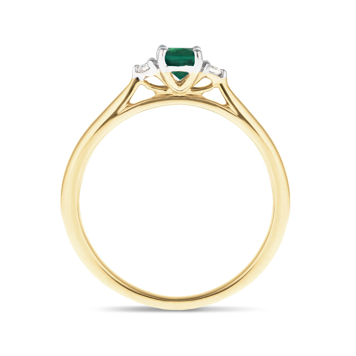 Emerald 0.50ct Diamond 0.06ct Three Stone Ring 9k Yellow Gold - All Diamond