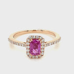 Emerald Pink Sapphire & Diamond 0.90ct Halo Ring in 18k Rose Gold