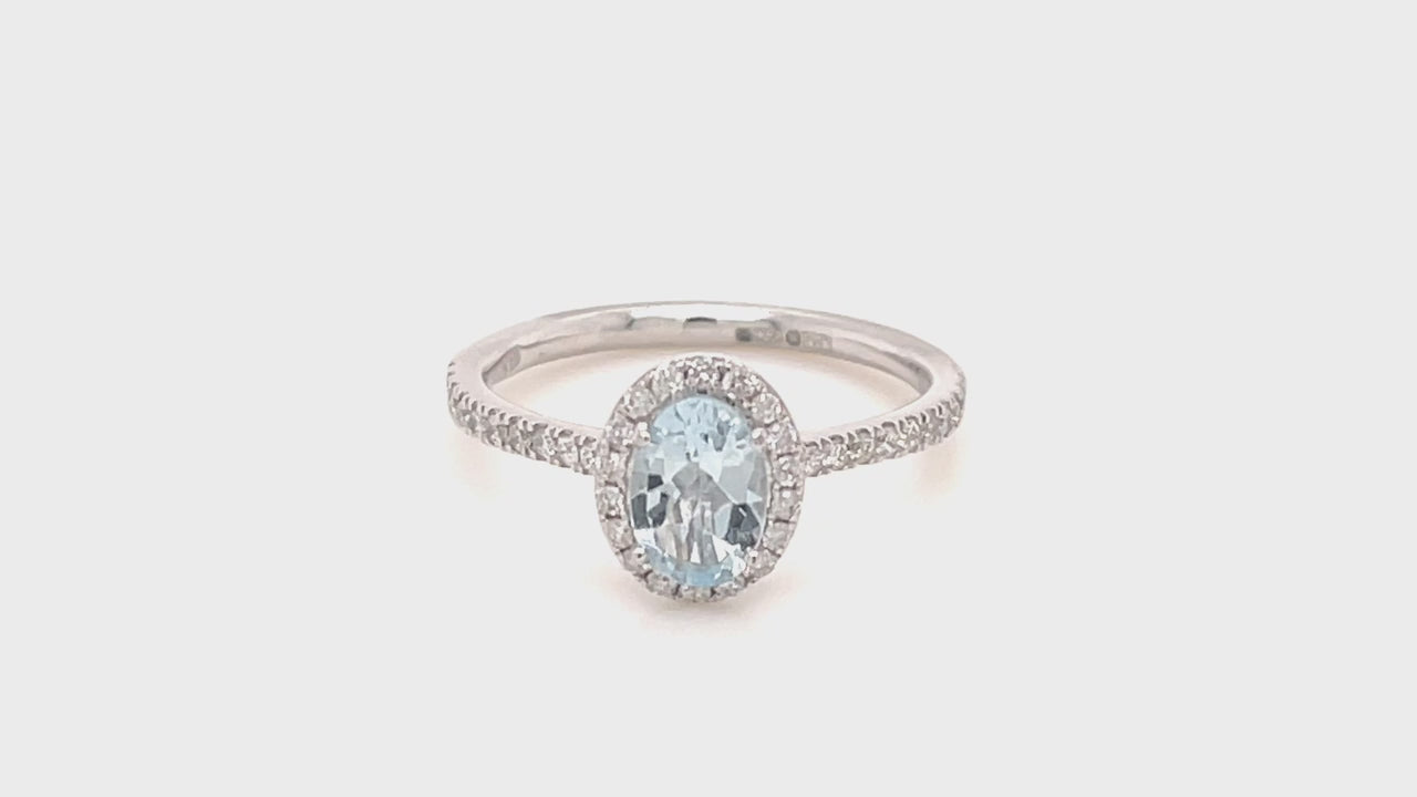 Halo Aquamarine 0.66ct and Diamond 0.27ct Ring in Platinum