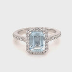 Halo Aquamarine 1.31ct and Diamond 0.38ct Ring in 18K White Gold