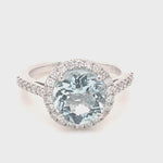 Halo Aquamarine 2.39ct and Diamond 0.43ct Ring in 18K White Gold - All Diamond