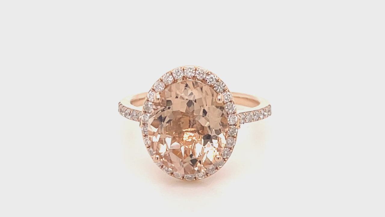 Halo Oval Morganite 4.26ct and Diamond 0.49ct Ring in 9k Rose Gold - All Diamond