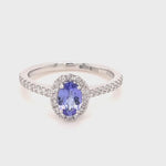 Halo Oval Tanzanite 0.47ct and Diamond 0.27ct Ring in 18K White Gold