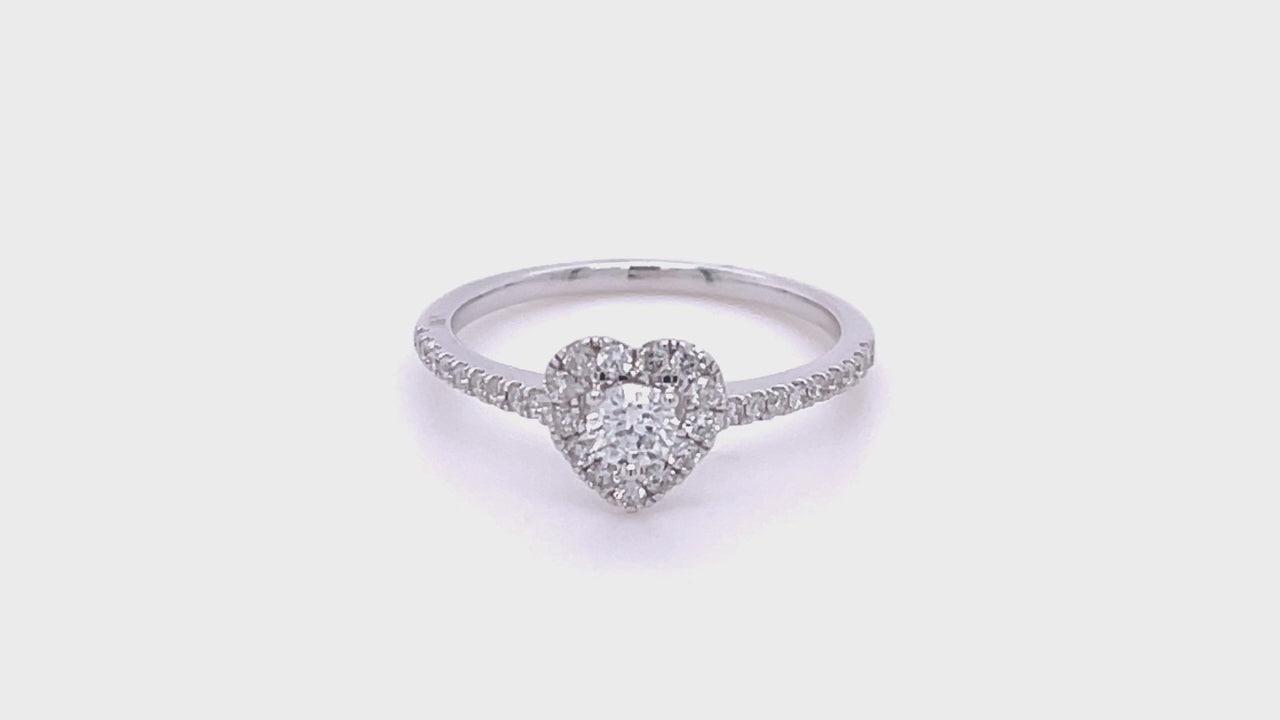 Heart Diamond Engagement Side Stone Ring 0.35ct G/SI 18k White Gold - All Diamond