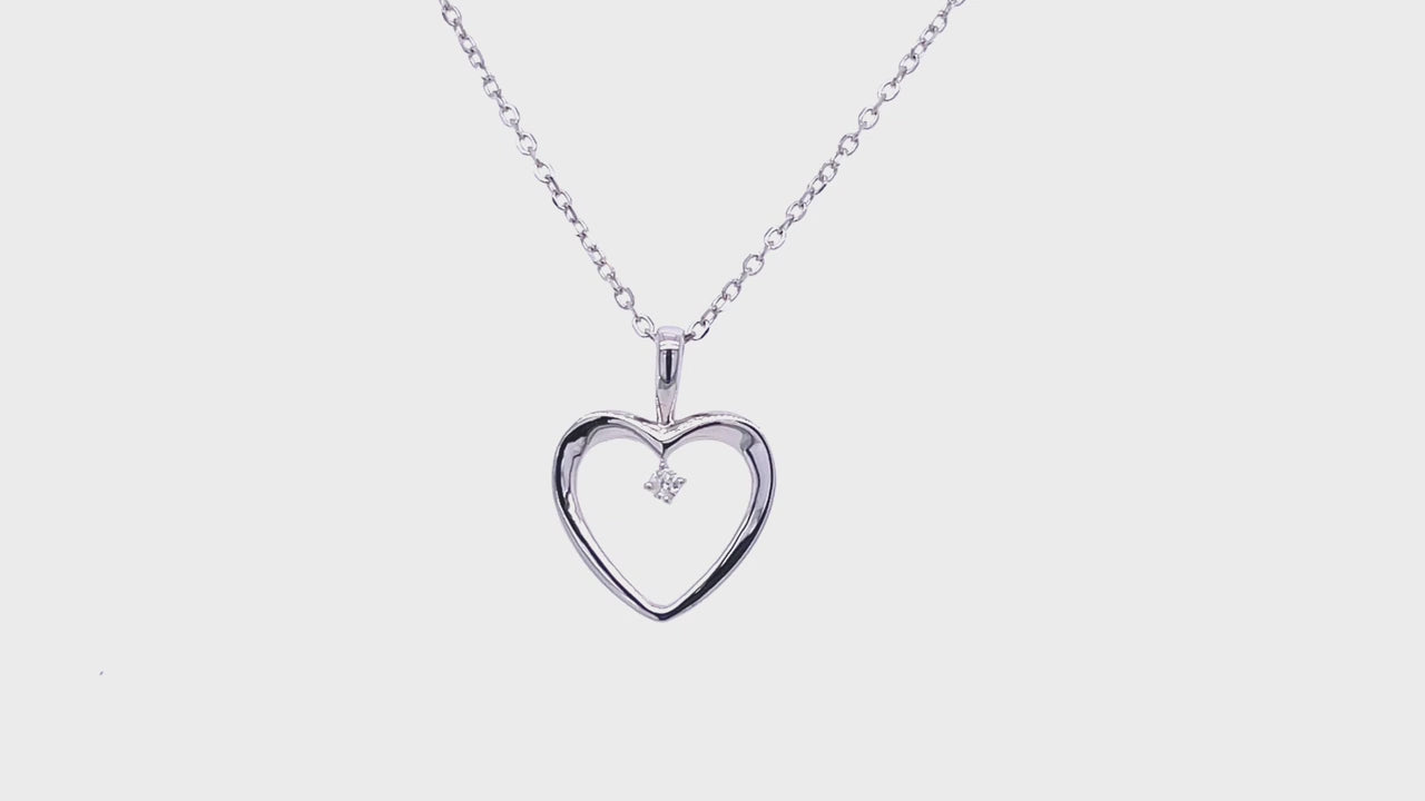 Heart Pendant Necklace 0.02ct Diamond 9K White Gold